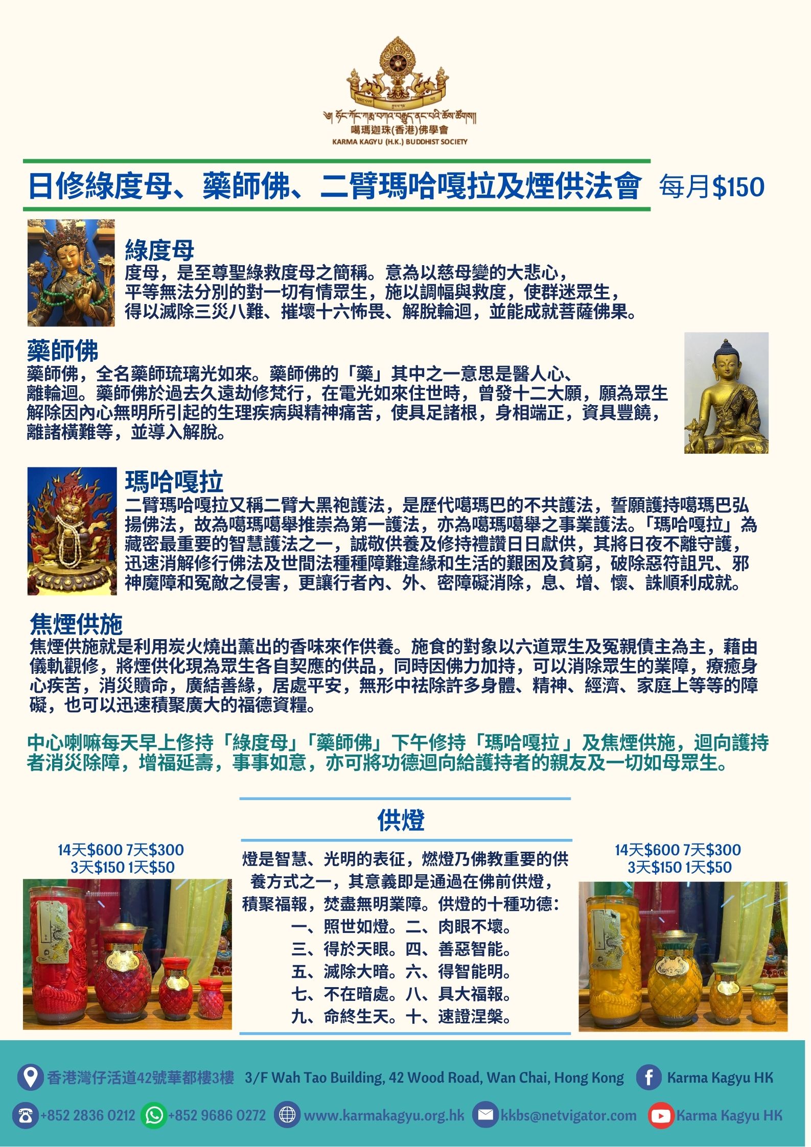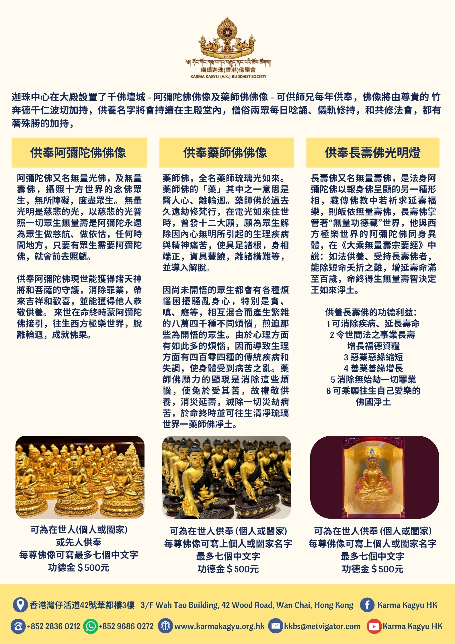 支票抬頭: 噶瑪迦珠(香港)佛學會有限公司 或 “KARMA KAGYU (H.K.) BUDDHIST SOCIETY LTD.”